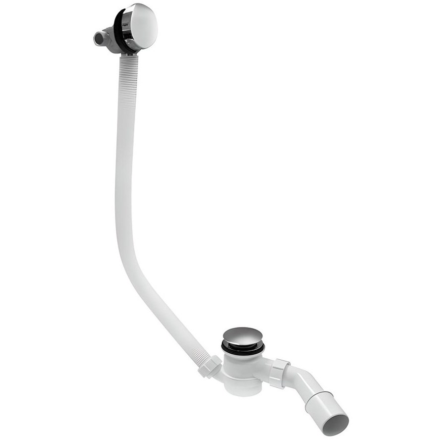 Сифон для ванны с механизмом наполнения. Сифон оборудован системой закрытия и открывания "Клик-Клак". Заправочный элемент и сливная пробка из латуни покрыты слоем хрома. Отвод 1.1/2"х40/50 мм. Пропускная способность - 50 л/мин на полюсе 120 мм.
