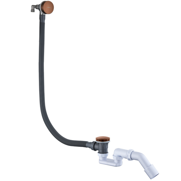 Автоматический слив-перелив для ванны Boheme. Латунные наружные части. Длина 500-1000 мм. Функция набора ванны через перелив, гидрозатвор, клик-клак.