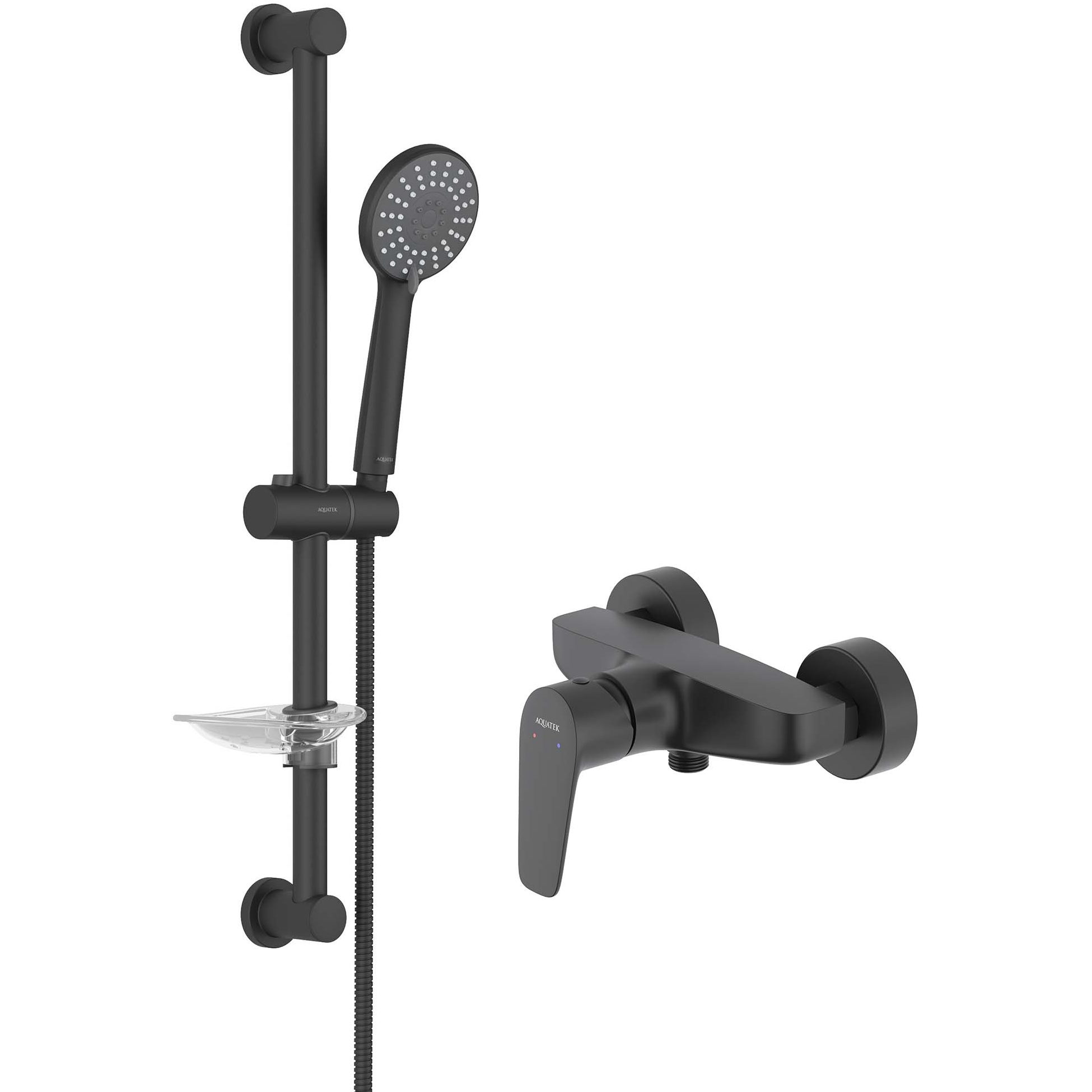 - в комплекте: душевая штанга; держатель душевой лейки; душевая лейка; душевой шланг; мыльница; монтажный комплект;