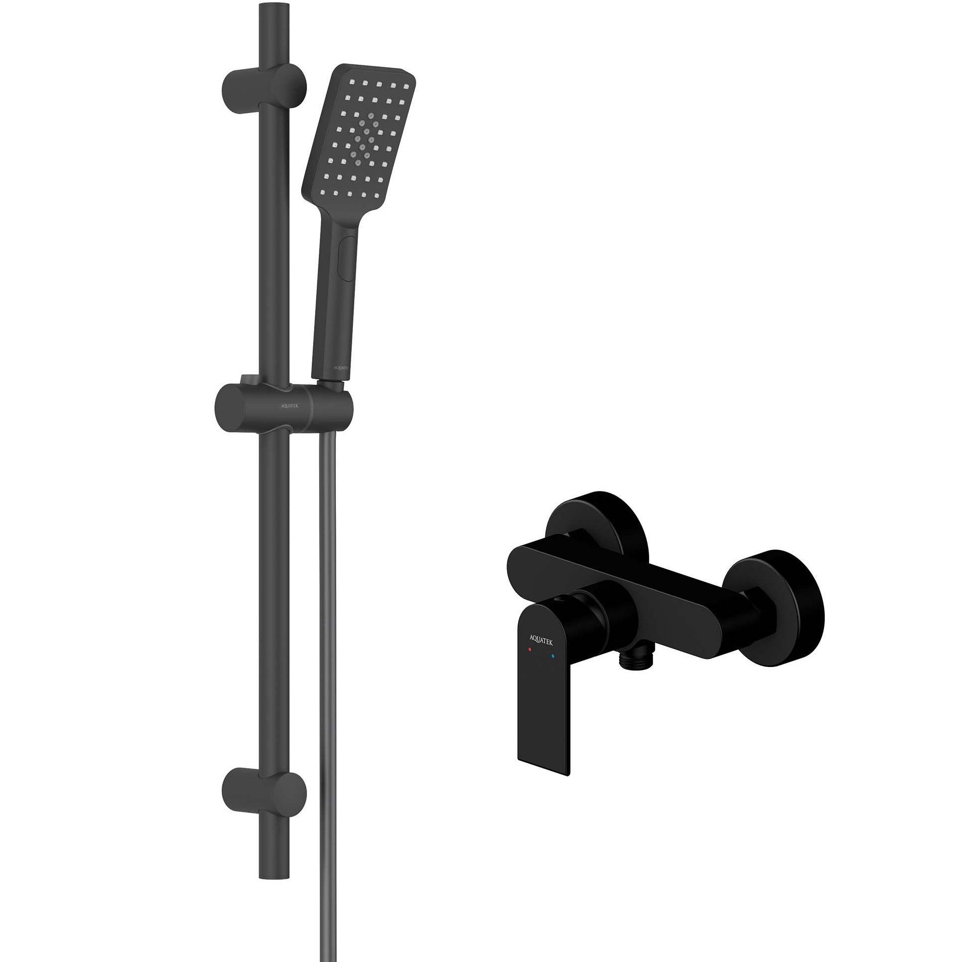 - в комплекте: душевая штанга; держатель душевой лейки; душевая лейка; душевой шланг; монтажный комплект;