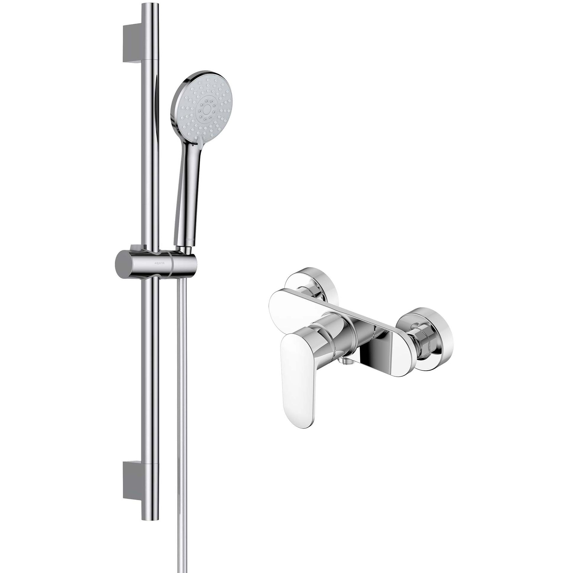 - в комплекте: душевая штанга; держатель душевой лейки; душевая лейка; душевой шланг; монтажный комплект;