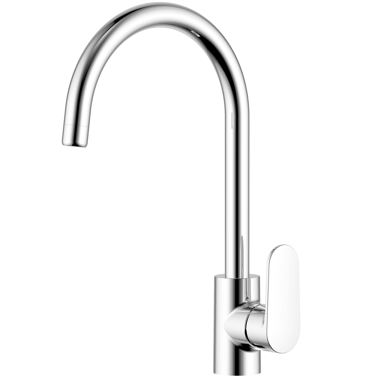 Оснащен высоким изливом, подходит для большинства кухонных моек. Однорычажная система регулировки силы струи и температуры воды. Цельный корпус смесителя снижает вероятность протечек. Оптимальная длина подводки. Комплект поставки: смеситель, гибкая подводка 60 см, монтажный комплект, слив-перелив и донный клапан в комплект не входят.