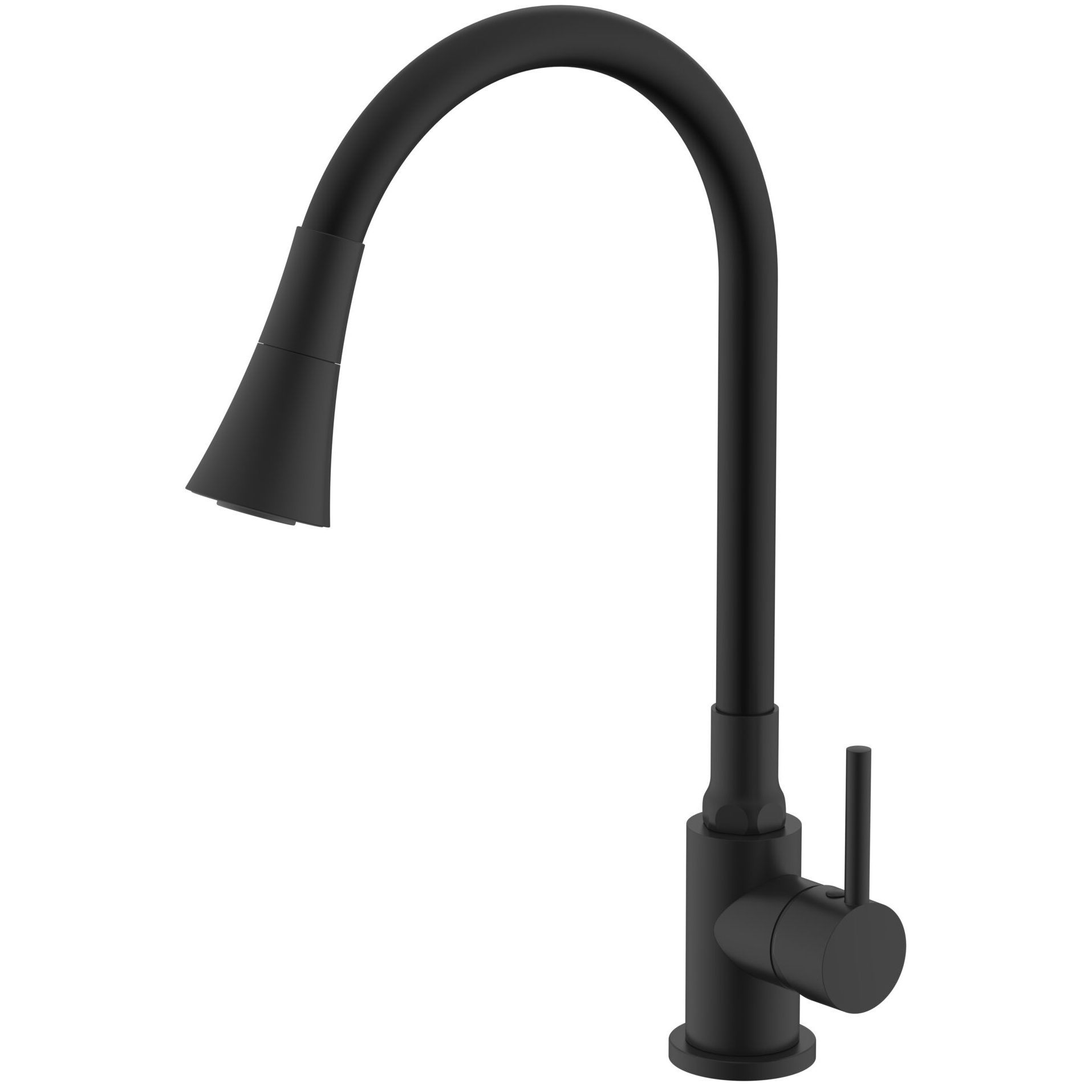 Материал – латунь. Цвет – черный. Керамический картридж. Гибкий силиконовый излив. Аэратор 2 режима. Гибкая подводка 50 см. Крепежная гайка.