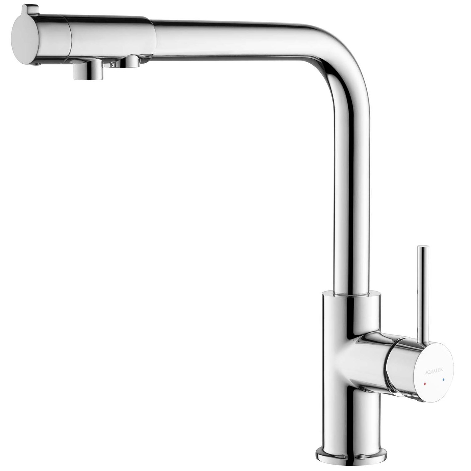 Для подключения фильтра для воды непосредственно к смесителю. Позволяет получать холодную питьевую воду непосредственно из водопровода. Не требует дополнительного отверстия в мойке под фильтр. Оснащен высоким изливом, удобен для мытья крупных предметов. Однорычажная система регулировки силы струи и температуры воды. Цельный корпус смесителя снижает вероятность протечек. Оптимальная длина подводки. Комплект поставки: смеситель, гибкая подводка 60 см, монтажный комплект, слив-перелив и донный клапан в комплект не входят, силиконовая трубка для подключения к фильтру в комплект не входит, фильтр для воды в комплект не входит.