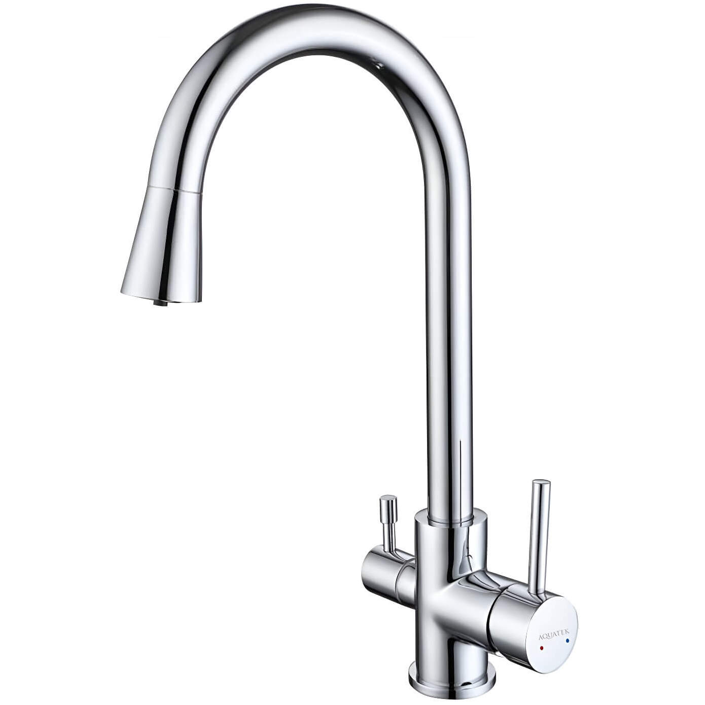 С каналом для фильтрованной воды. Для подключения фильтра для воды непосредственно к смесителю. Позволяет получать холодную питьевую воду непосредственно из водопровода. Не требует дополнительного отверстия в мойке под фильтр. Оснащен высоким изливом, удобен для мытья крупных предметов. Однорычажная система регулировки силы струи и температуры воды. Цельный корпус смесителя снижает вероятность протечек. Оптимальная длина подводки. В комплекте: Смеситель, гибкая подводка 60 см, монтажный комплект, слив-перелив и донный клапан в комплект не входят, силиконовая трубка для подключения к фильтру в комплект не входит, фильтр для воды в комплект не входит.