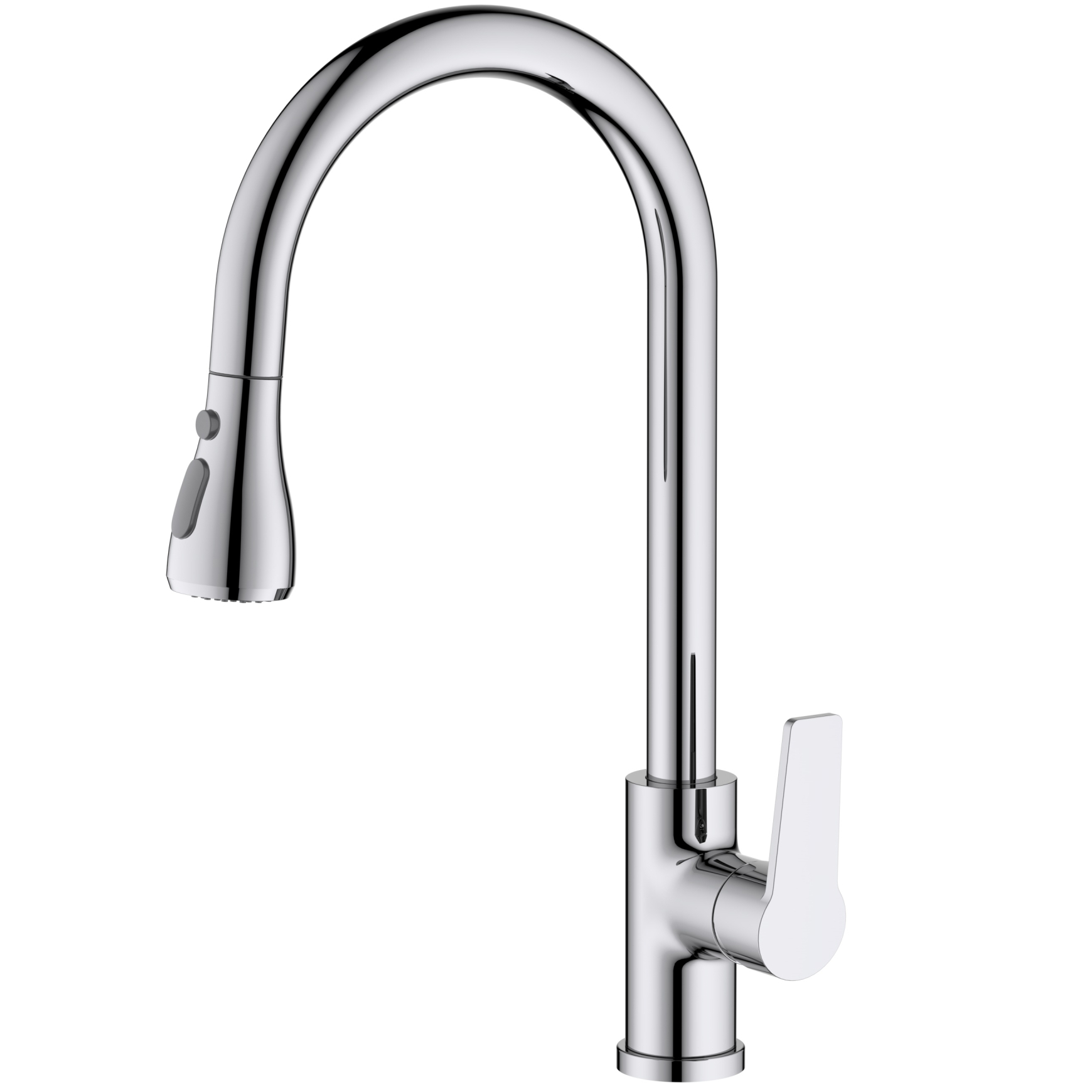 Оснащен высоким вытяжным изливом, удобен для мытья крупных предметов. Однорычажная система регулировки силы струи и температуры воды. Цельный корпус смесителя снижает вероятность протечек. Оптимальная длина подводки. Поворотная головка выдвижного излива на 360 градусов из нержавеющей стали. Магнитный фиксатор вытяжного излива. Аэратор с 2 режимами подачи водяной струи. Комплект поставки: смеситель, гибкая подводка 60 см, монтажный комплект, слив-перелив и донный клапан в комплект не входят.