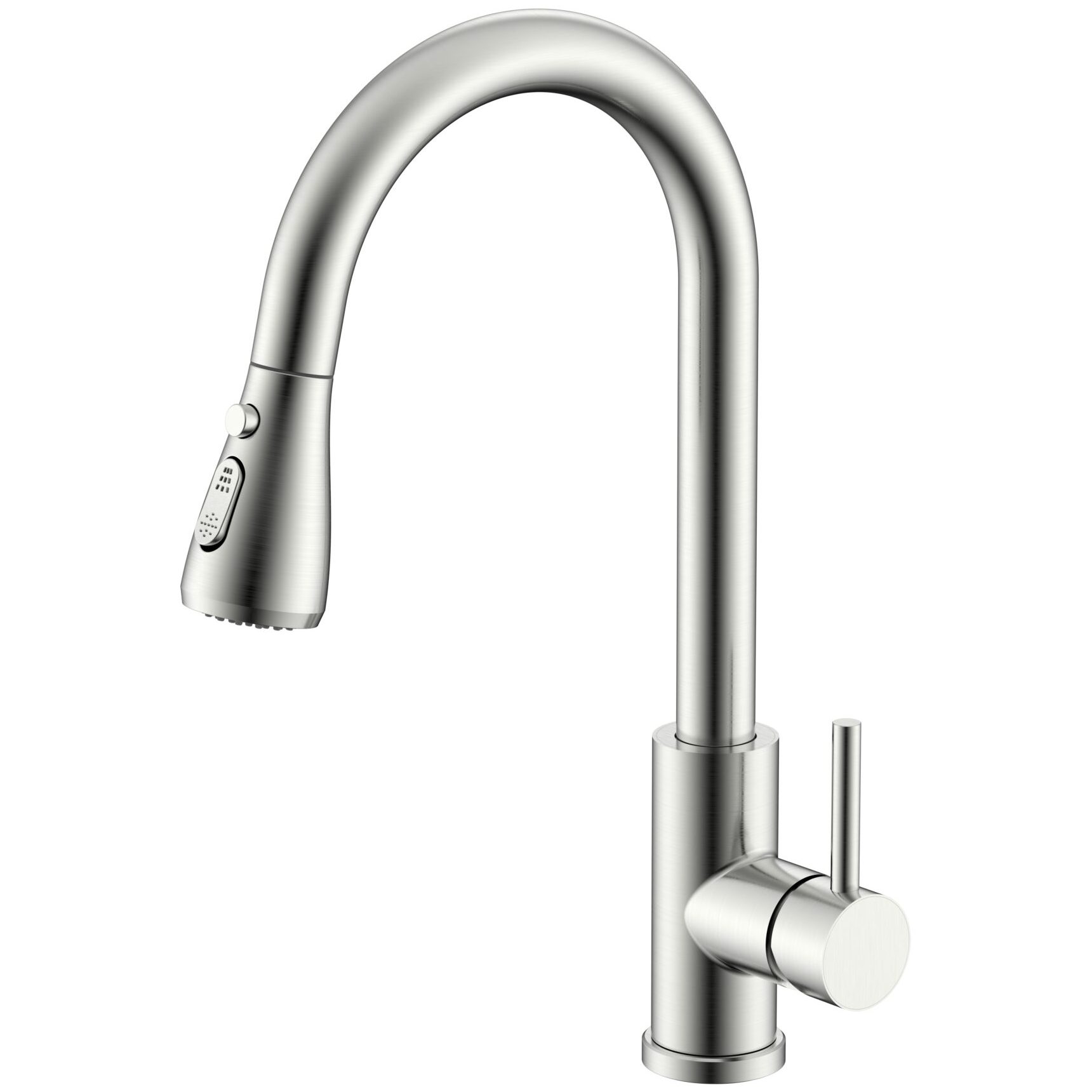 Материал – нержавеющая сталь. Цвет – сатин. Керамический картридж 35 мм. Аэратор 2 режима. Гибкая подводка 50 см. Шланг 1.5 м. Крепежная гайка.