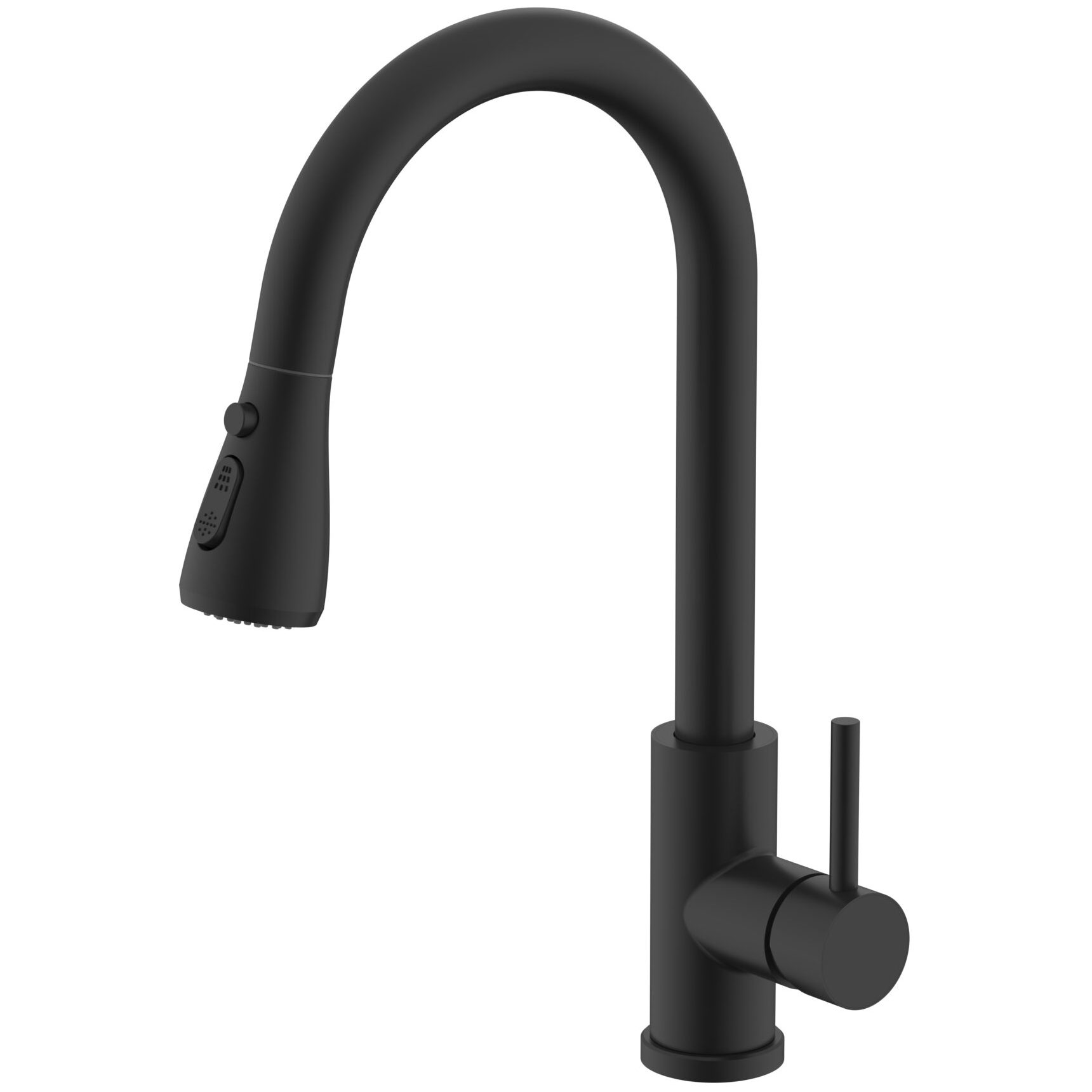 Материал – нержавеющая сталь. Цвет – черный. Керамический картридж 35 мм. Аэратор 2 режима. Гибкая подводка 50 см. Шланг 1.5 м. Крепежная гайка.