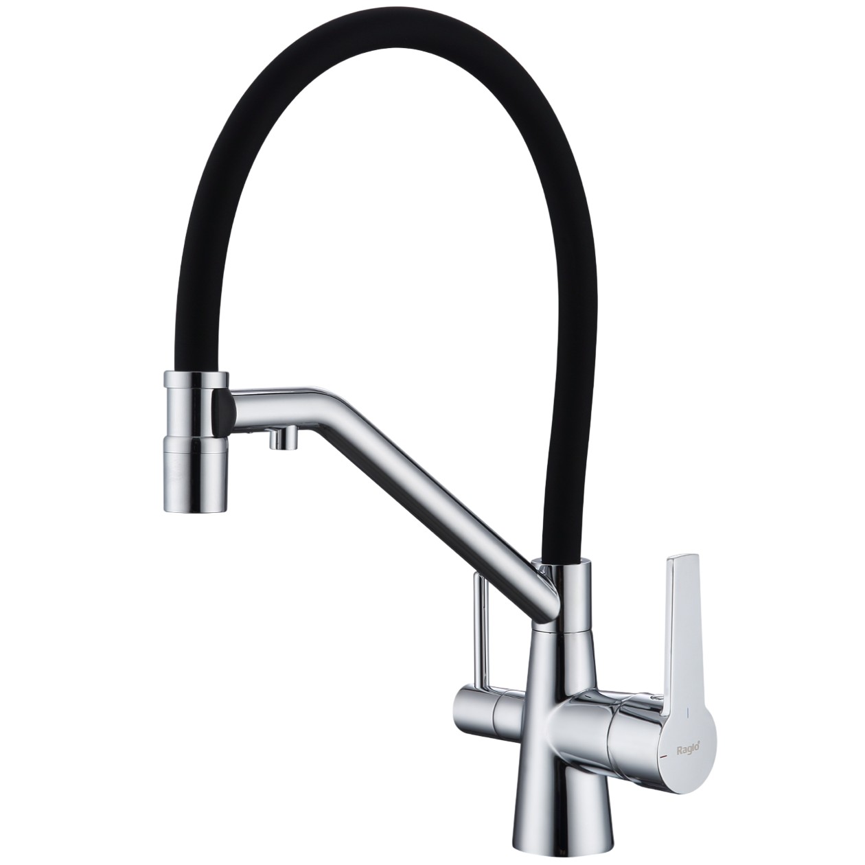 Материал – латунь. Керамический картридж 35 мм. Переключатель с керамическими пластинами (угол поворота – 90°). Аэратор. Аэратор для фильтрованной воды. Переходник для соединения со стационарной системой питьевой воды. Гибкая подводка 55 см. Крепежная 1 шпилька.