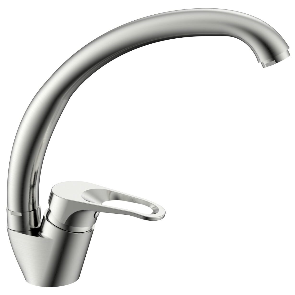 Материал – нержавеющая сталь. Цвет – сатин. Керамический картридж. Аэратор. Гибкая подводка 50 см. Крепежная гайка.