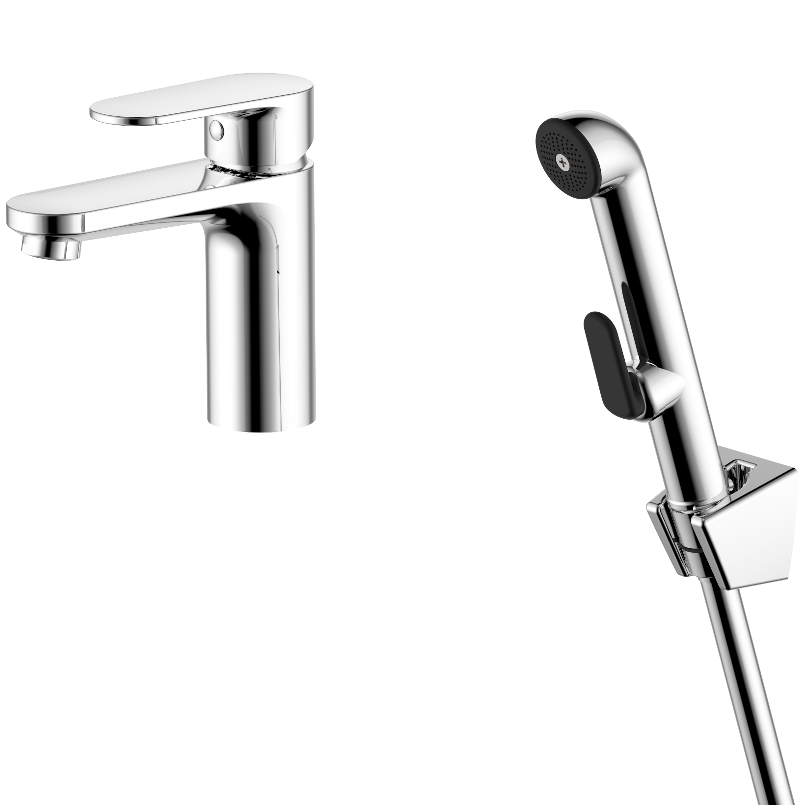 Практичное решение для санузла или для ванной комнаты, совмещенной с санузлом, в которых не предусмотрено отдельное подключение для гигиенического душа. Однорычажная система регулировки силы струи и температуры воды. Цельный корпус смесителя снижает вероятность протечек. Шланг из нержавеющей стали. Легкая очистка аэратора. Оптимальная длина подводки. Комплект поставки: смеситель, гибкая подводка 60 см, шланг для лейки 150 см, гигиеническая лейка, оснащена нажимным механизмом для остановки потока воды, настенный держатель для гигиенической лейки, монтажный комплект.