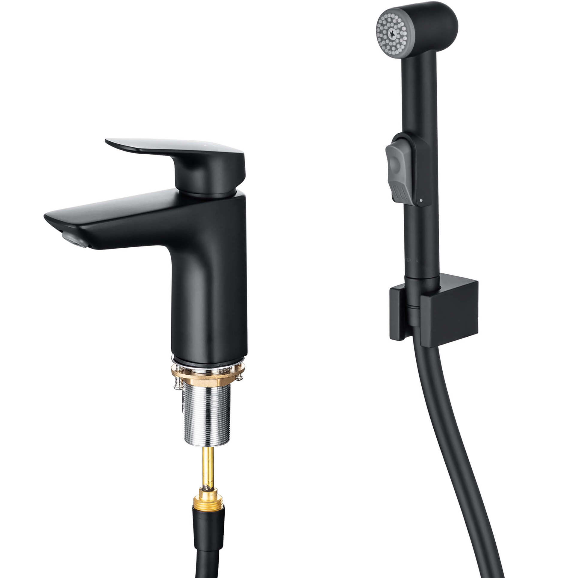 Практичное решение для санузла или для ванной комнаты, совмещенной с санузлом, в которых не предусмотрено отдельное подключение для гигиенического душа. Однорычажная система регулировки силы струи и температуры воды. Цельный корпус смесителя снижает вероятность протечек. Шланг из ПВХ. Легкая очистка аэратора. Оптимальная длина подводки. В комплекте: смеситель, гибкая подводка 50 см, шланг для лейки 150 см, гигиеническая лейка, размер лейки 173x54 мм, оснащена нажимным механизмом для остановки потока воды, настенный держатель для гигиенической лейки, монтажный комплект.
