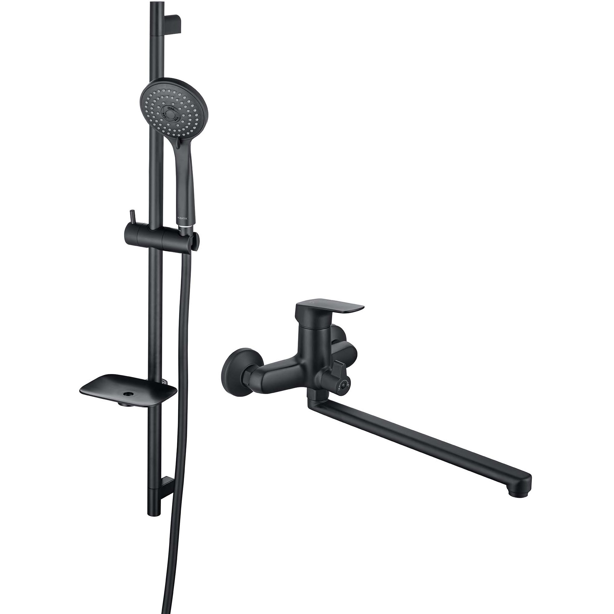 Смеситель для ванны. Душевой гарнитур: стойка для душа с мыльницей, лейка, шланг.