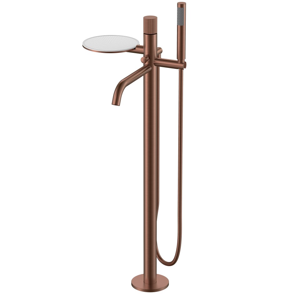 Напольный смеситель для ванны в комплекте с душевым гарнитуром.