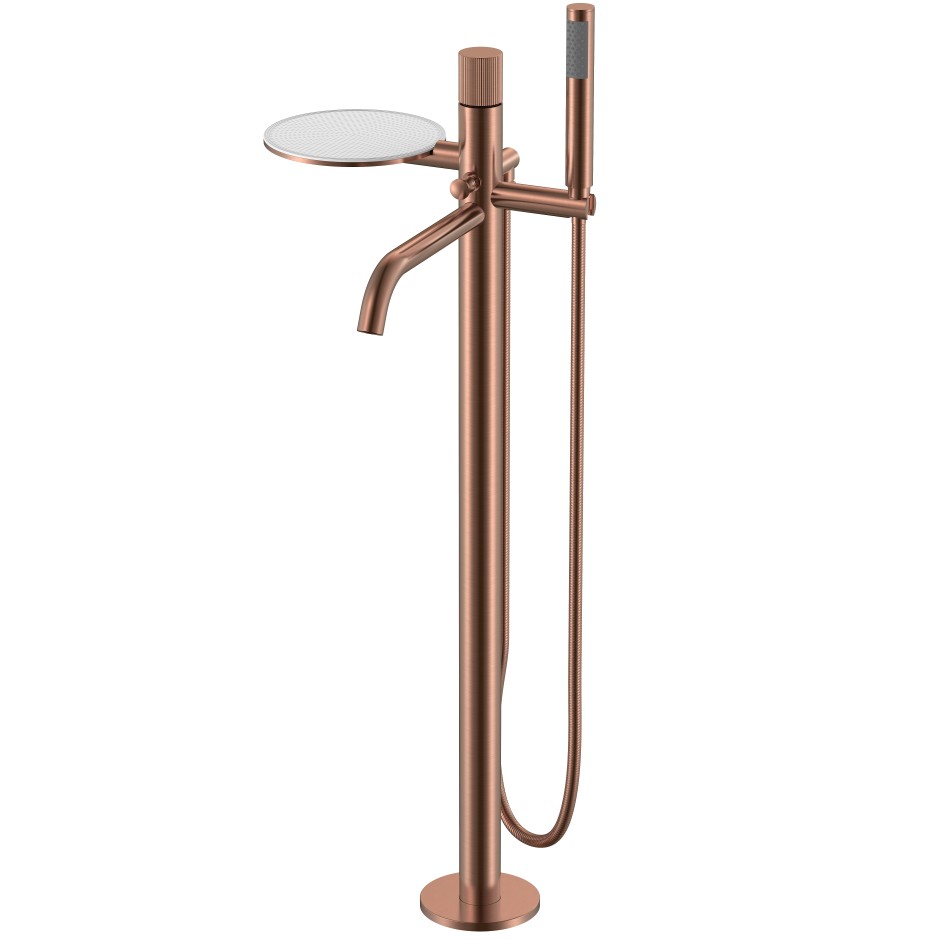 Напольный смеситель для ванны в комплекте с душевым гарнитуром.