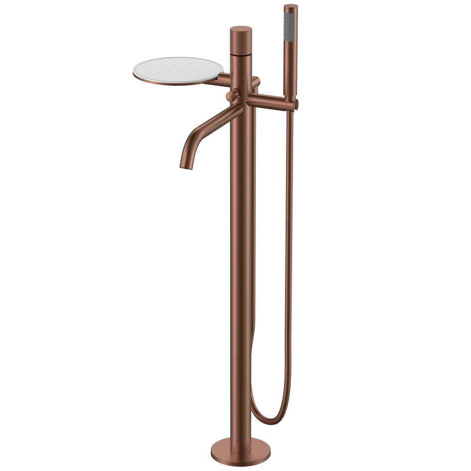 Напольный смеситель для ванны в комплекте с душевым гарнитуром.