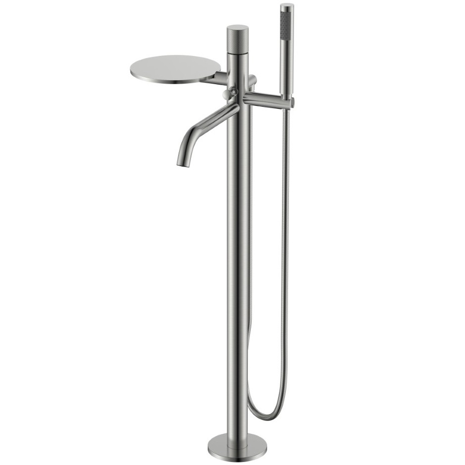 Напольный смеситель для ванны в комплекте с душевым гарнитуром.