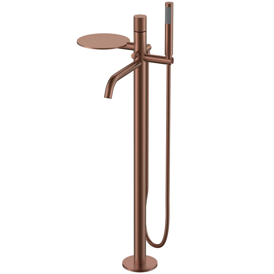 Напольный смеситель для ванны в комплекте с душевым гарнитуром.