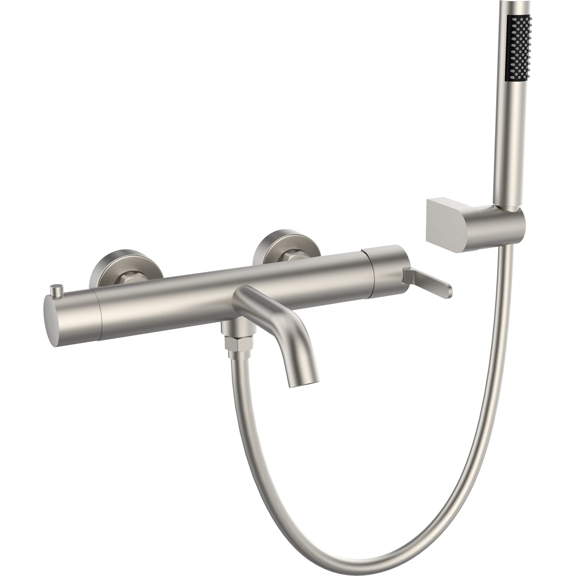 Дополнительные свойства: гибкий полимерный шланг с защитой от залома и гладкой поверхностью, латунный ручной душ, аэратор - смешивающий воду с воздухом и рассеивает ее, для более объемной и мягкой воды, керамический картридж. Комплектация: смеситель настенного монтажа, латунный ручной душ, держатель для ручного душа, гибкий полимерный шланг, аэратор, эксцентрики, чаши декоративные.
