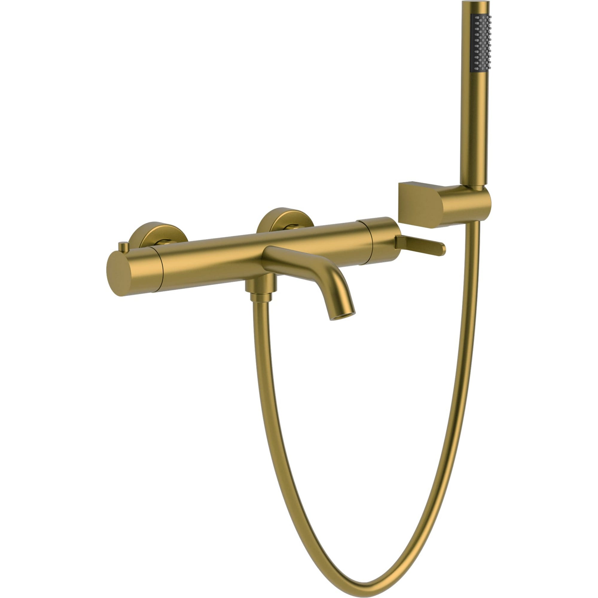 Дополнительные свойства: PVD - покрытие, гибкий полимерный шланг с защитой от залома и гладкой поверхностью, латунный ручной душ, аэратор - смешивающий воду с воздухом и рассеивает ее, для более объемной и мягкой воды, керамический картридж. Комплектация: смеситель настенного монтажа, латунный ручной душ, держатель для ручного душа, гибкий полимерный шланг, аэратор, эксцентрики, чаши декоративные.
