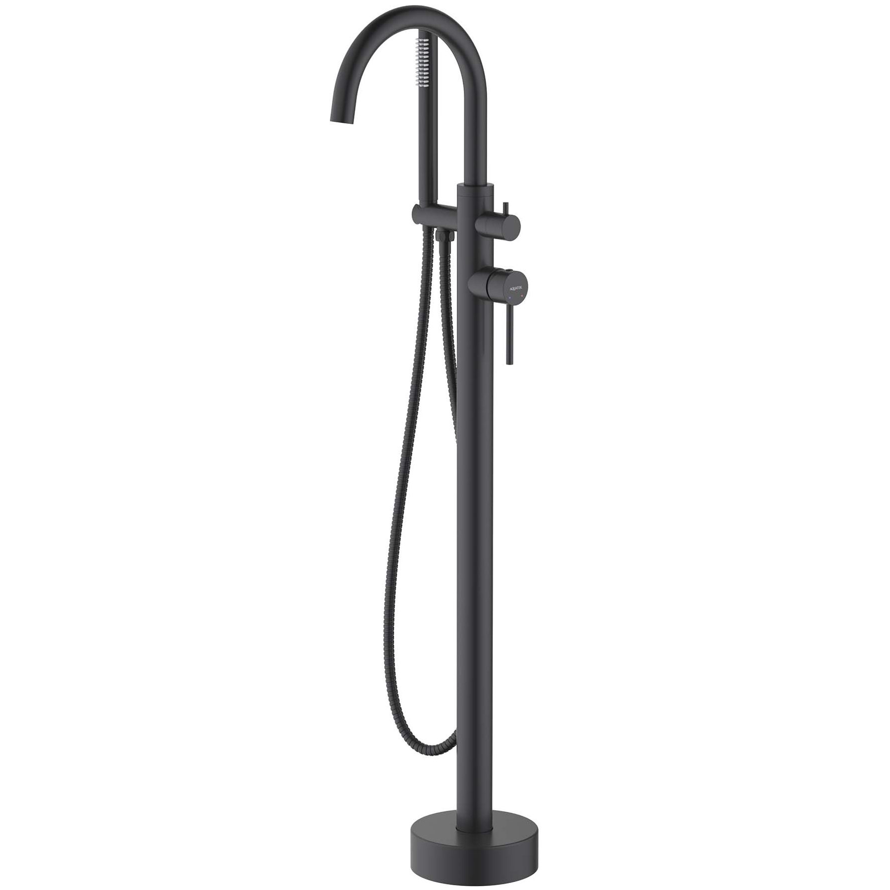 Однорычажная система регулировки силы струи и температуры воды. Цельный корпус смесителя снижает вероятность протечек. Легкая очистка аэратора. Напольный монтаж. Оптимальная длина подводки. В комплекте ручная лейка и шланг 1,5 м. Поворотный переключатель на душ. Шланг с защитой от перекручивания. Комплект поставки: смеситель, ручная лейка, шланг для лейки 150 см, держатель для ручной лейки, дивертор (переключатель потоков), декоративная накладка на пол, крепление для смесителя.