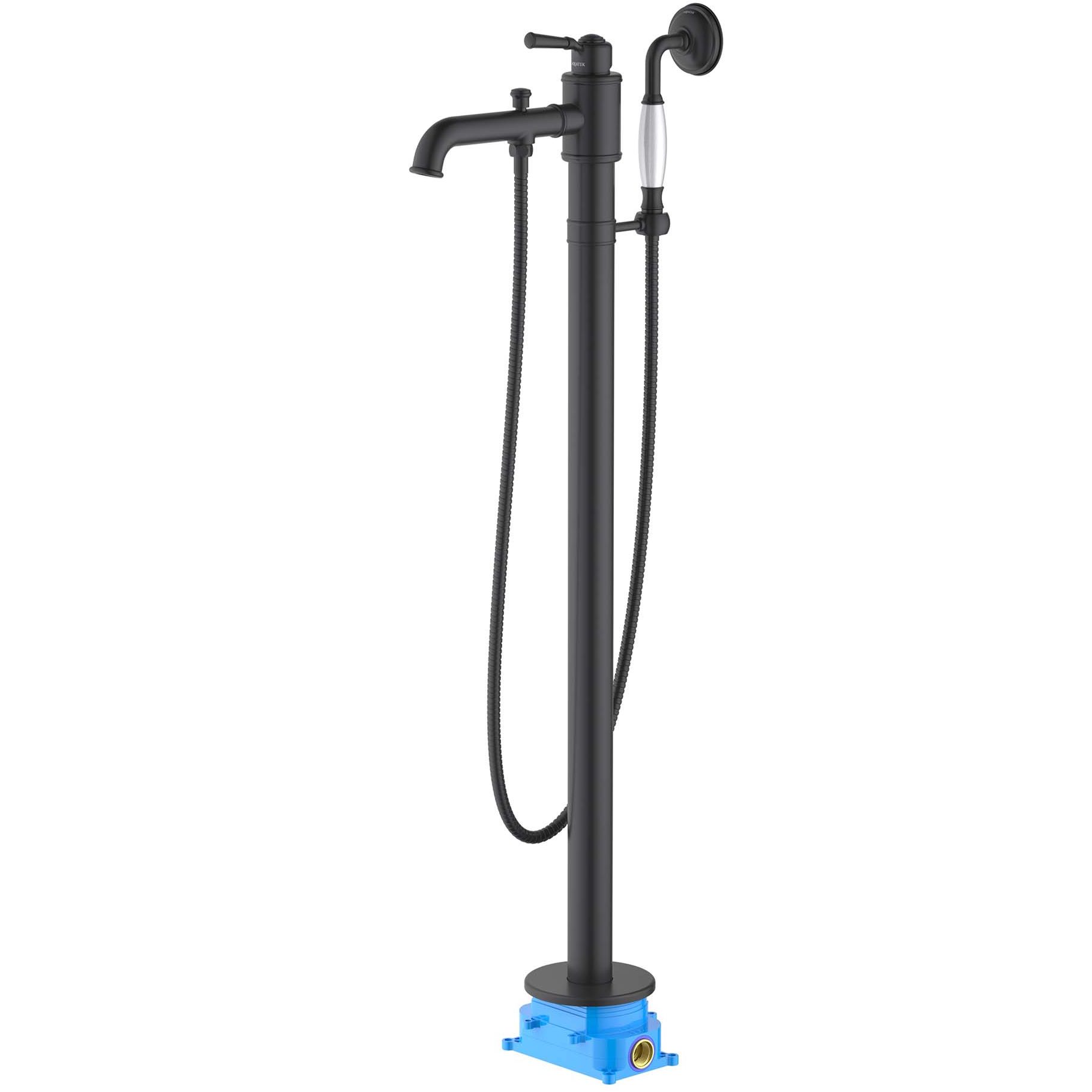 Однорычажная система регулировки силы струи и температуры воды. Цельный корпус смесителя снижает вероятность протечек. Легкая очистка аэратора. Напольный монтаж. В комплекте ручная лейка и шланг 1,5 м. Латунный рычажный переключатель. Шланг с защитой от перекручивания. Комплект поставки: смеситель (внешняя и скрытая часть), ручная лейка, шланг для лейки 150 см, держатель для ручной лейки, дивертор (переключатель потоков), декоративная накладка на пол.