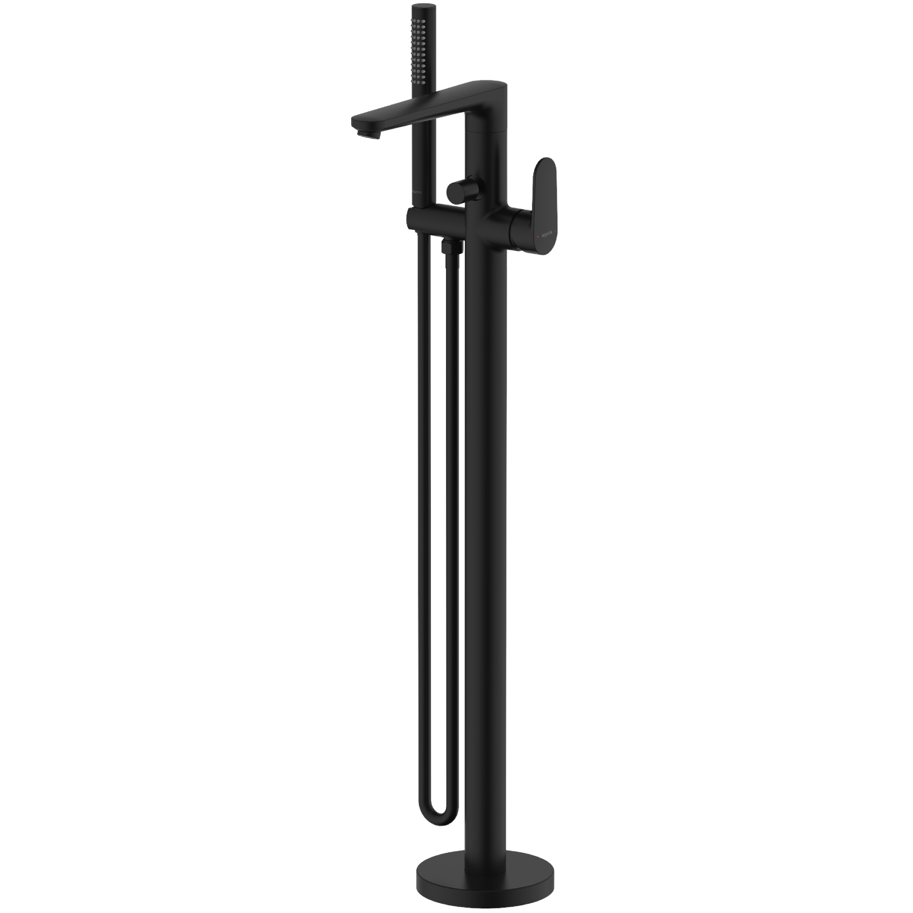 Однорычажная система регулировки силы струи и температуры воды. Цельный корпус смесителя снижает вероятность протечек. Легкая очистка аэратора. Напольный монтаж. Оптимальная длина подводки. В комплекте ручная лейка и шланг 1,5 м. Поворотный переключатель на душ. Шланг с защитой от перекручивания. Комплект поставки: смеситель, ручная лейка, шланг для лейки 150 см, держатель для ручной лейки, дивертор (переключатель потоков), декоративная накладка на пол, крепление для смесителя.
