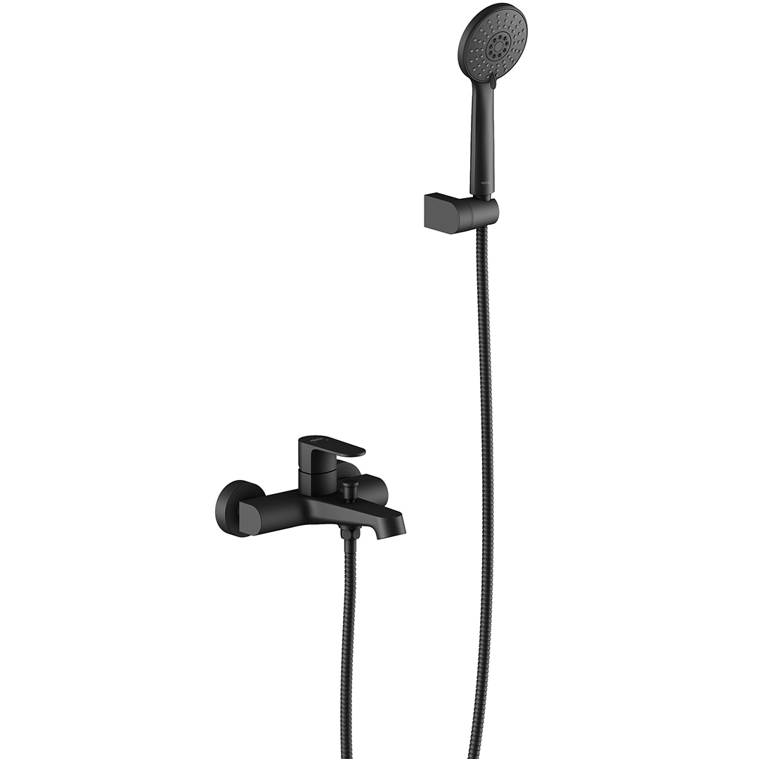 Однорычажная система регулировки силы струи и температуры воды. Цельный корпус смесителя снижает вероятность протечек. Легкая очистка аэратора. Латунный вытяжной переключатель на душ. Ручной душ из пластика на 3 режима. Поворотный держатель ручного душа из пластика. Комплект поставки: смеситель, душевой гарнитур (лейка, шланг, настенный держатель для лейки), S-образные эксцентрики, декоративные отражатели.