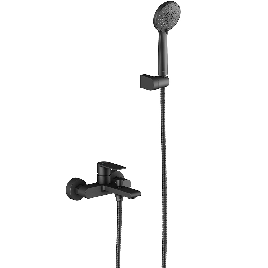 Однорычажная система регулировки силы струи и температуры воды. Цельный корпус смесителя снижает вероятность протечек. Легкая очистка аэратора. Латунный вытяжной переключатель на душ. Ручной душ из пластика на 3 режима. Поворотный держатель ручного душа из пластика. Комплект поставки: смеситель, душевой гарнитур (лейка, шланг, настенный держатель для лейки), S-образные эксцентрики, декоративные отражатели.