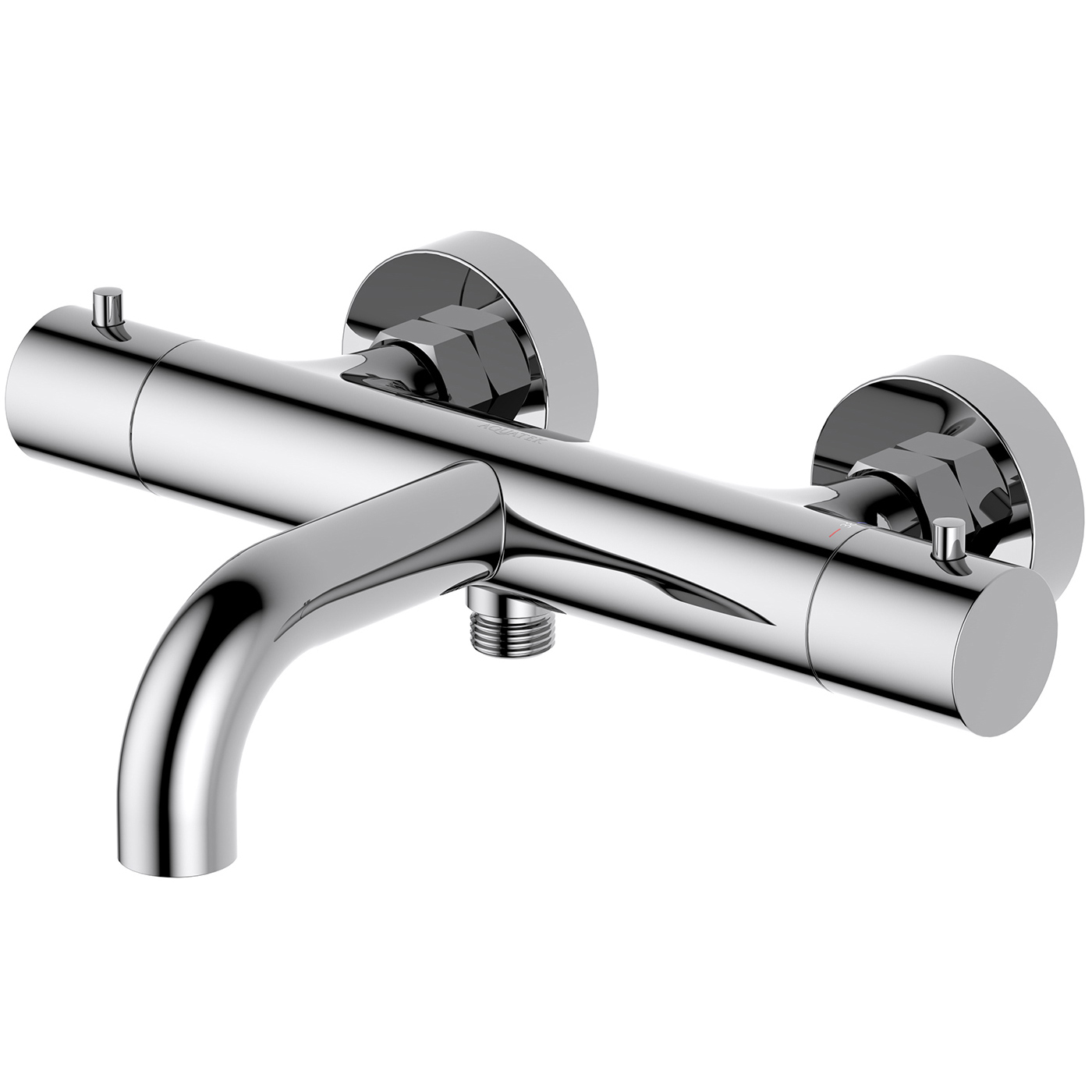Двухрычажная система регулировки силы струи и температуры воды. Цельный корпус смесителя снижает вероятность протечек. Клапан обратного тока воды. Эксцентрики из нержавеющей стали с отражателями. Наличие керамических элементов в диверторе позволяет значительно продлить его срок службы. Постоянная температура воды и защита от ожогов. Комплект поставки: смеситель, S-образные эксцентрики, декоративные накладки, отражатели, душевой гарнитур приобретается отдельно.
