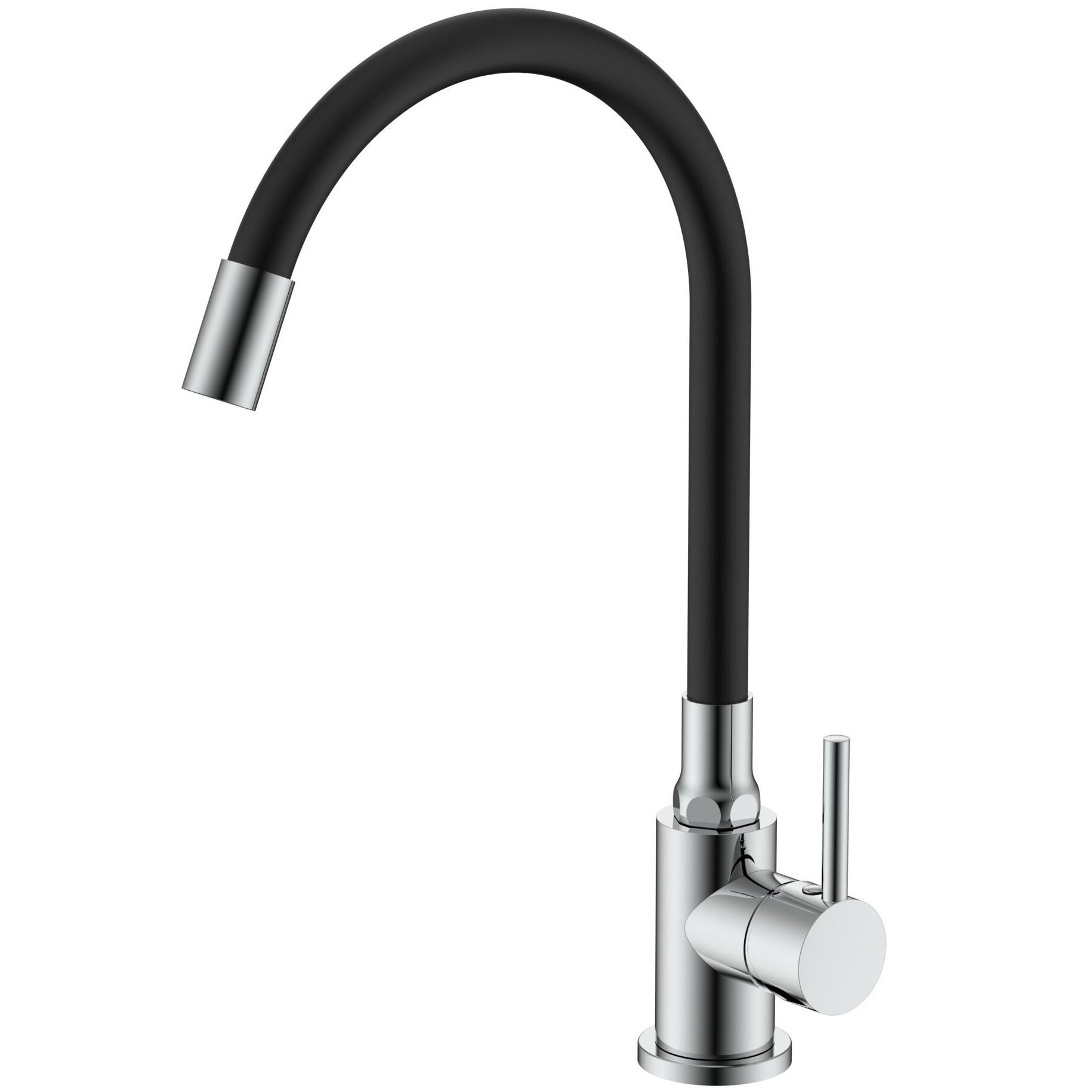 Материал – нержавеющая сталь. Цвет – хром + черный. Керамический картридж. Гибкий силиконовый излив. Аэратор 2 режима. Гибкая подводка 50 см. Крепежная гайка.