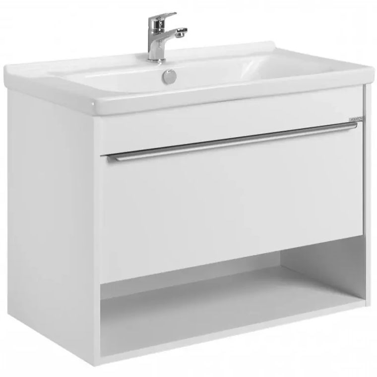 Тумбы для ванной комнаты коллекции Хоуп — это идеальное сочетание простоты линий и функциональности, которое преобразит ваше пространство. Каждая тумба в этой коллекции создана с вниманием к деталям и стремлением к гармонии, что делает их не только практичными, но и эстетически привлекательными. Элегантные линии и современный дизайн подчеркивают утонченность интерьера, а использование влагостойкой ЛДСП гарантирует долговечность и простоту в уходе. Удобная ручка добавляет нотку изысканности, а открытая ниша предоставляет возможность организовать пространство так, как вам удобно — будь то размещение любимых аксессуаров или необходимых принадлежностей. Корпус и фасад выполнены из влагостойкой ЛДСП в белом цвете. Ручка в данной коллекции в трендовом цвете Gun Metal (вороненый металл). Изготовленная из алюминия, она не только привлекает внимание своим эстетичным дизайном, но и имеет надежный и удобный хват. Тумбы коллекции Хоуп за счет своих цветовых решений в белом, древесном и светло-зеленом исполнении идеально впишутся в любой стиль ванной комнаты, от минимализма до классики, создавая атмосферу уюта и комфорта. Они не только помогут поддерживать порядок, но и станут ярким акцентом вашего интерьера. Направляющие полного выдвижения скрытого монтажа с доводчиком позволят использовать весь функционал ящиков бесшумно и с комфортом, а открытая ниша дает возможность убирать туда необходимы принадлежности, чтобы они всегда были под рукой. Высота полезного пространства - 160 мм. Умывальник в комплекте.