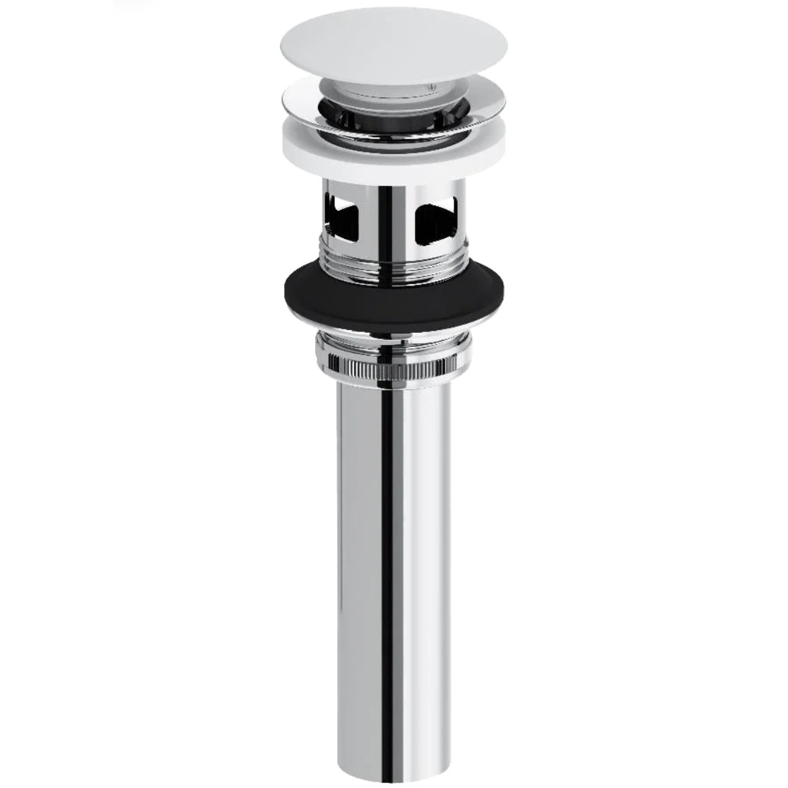 хромированное покрытие корпуса обладает высокой устойчивостью к механическим повреждениям. Белая заглушка станет стильным акцентом в интерьере ванной комнаты.