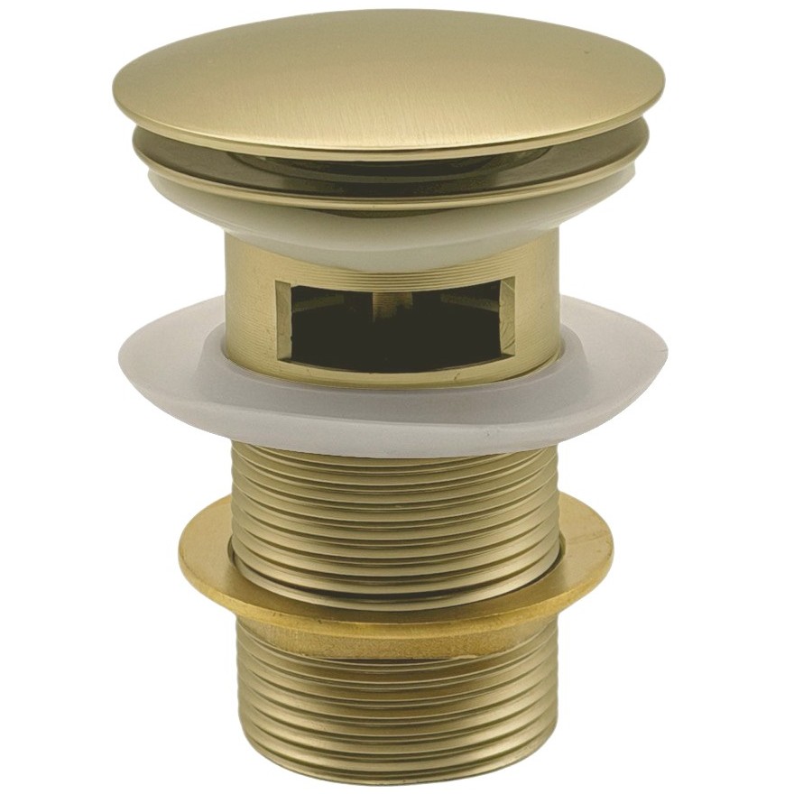 Донный клапан Click-Clack для умывальников с переливом. Материалы: латунь. Цвет брашированное золото.