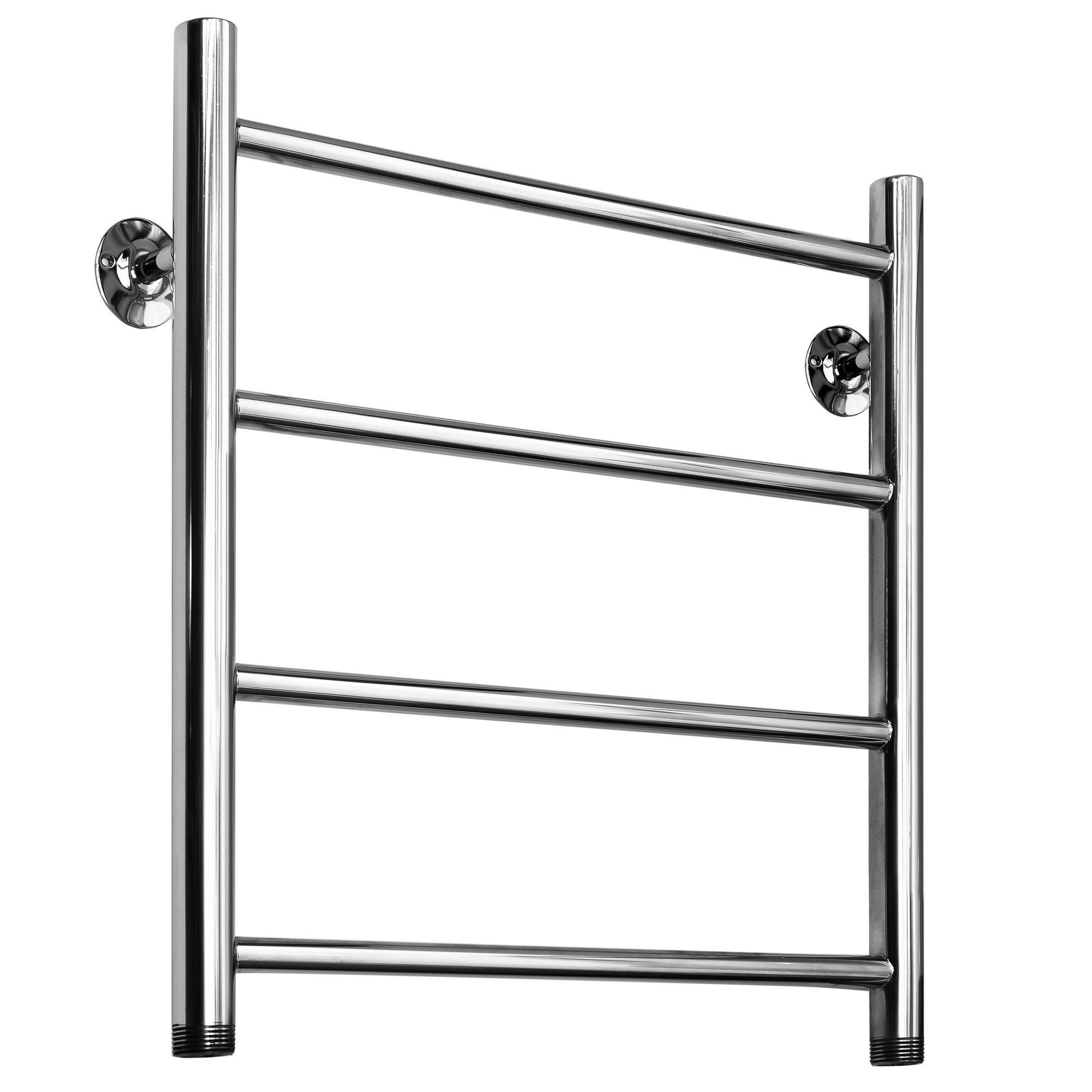 Водяной полотенцесушитель из нержавеющей стали в виде лесенки, перекладины в виде линии. Тепловая мощность: 210, 240, 269, 284, 359, 519, 509 Вт.