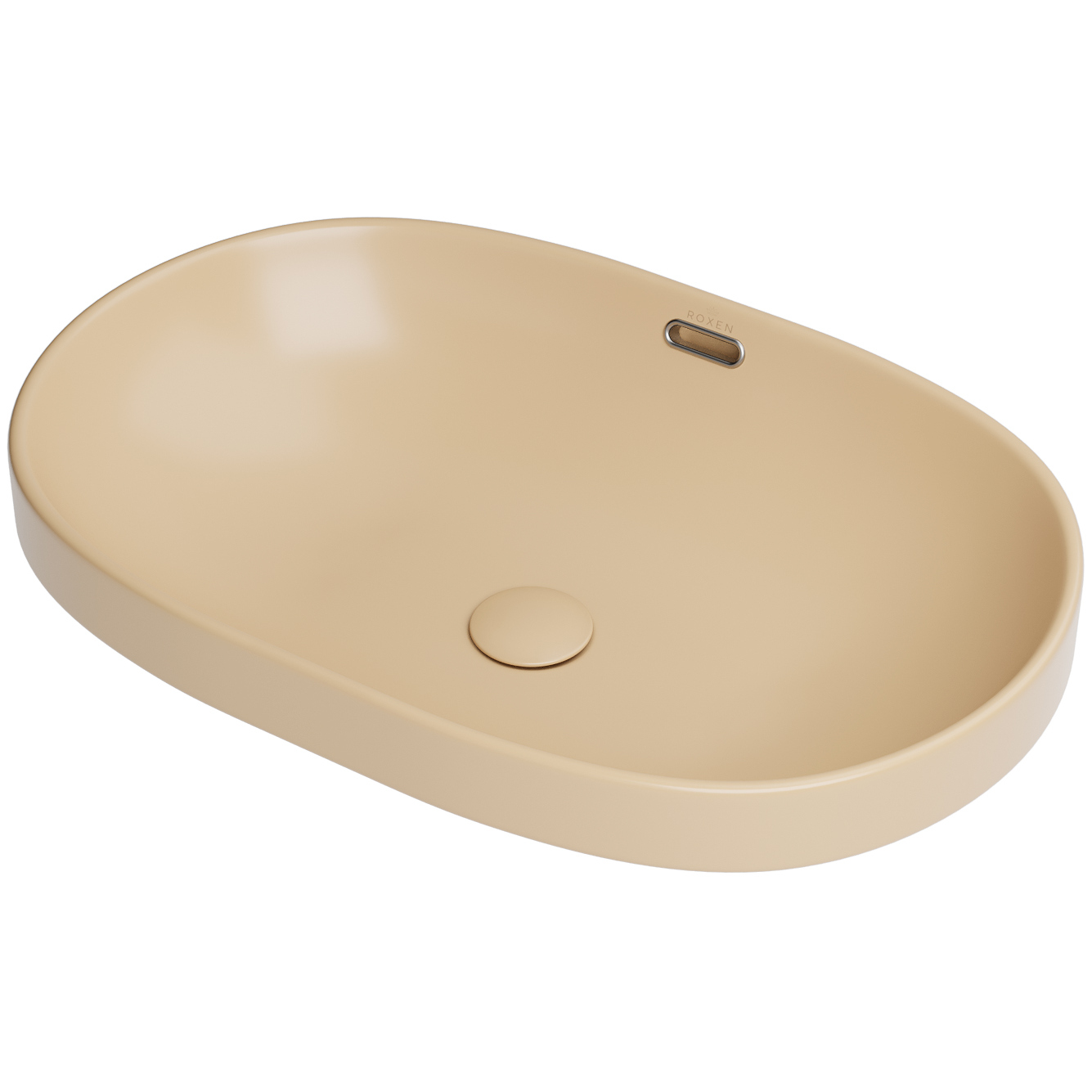 Накладной умывальник для монтажа на столешницу овальной формы с переливом. Донный клапан в комплекте.