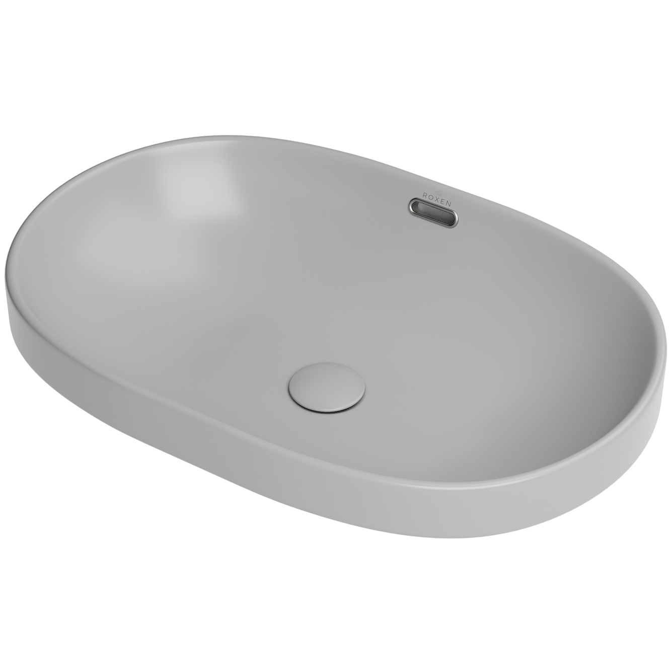 Накладной умывальник для монтажа на столешницу овальной формы с переливом. Донный клапан в комплекте.