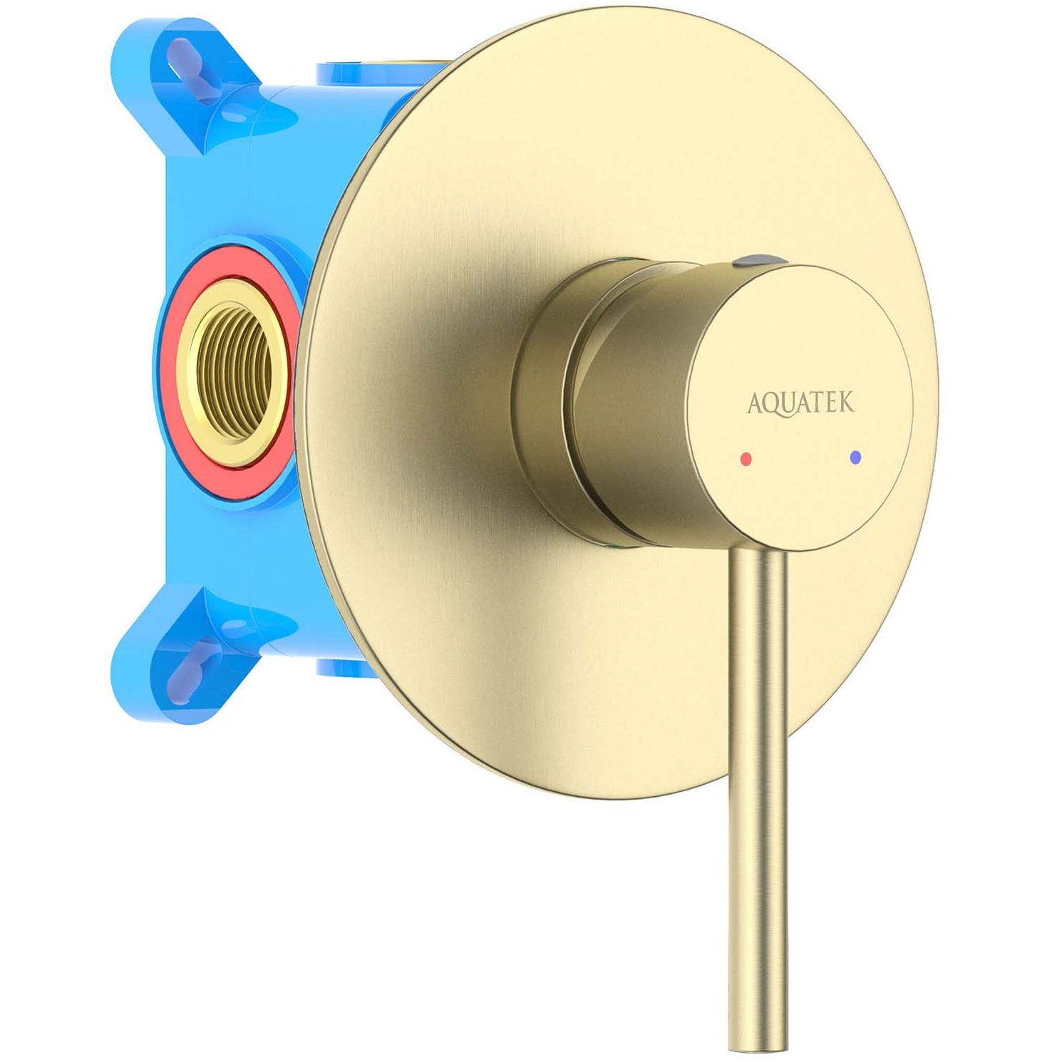 Однорычажная система регулировки силы струи и температуры воды. Цельный корпус смесителя снижает вероятность протечек. Встраиваемый в стену. Декоративная пластина 3 мм из нержавеющей стали. Лейка и шланг в комплект не входят. Комплект поставки: смеситель из латуни с установочной коробкой на 1 потребителя (внешняя и скрытая часть). Декоративная накладка на стену из нержавеющей стали 3 мм. Душевой гарнитур приобретается отдельно.
