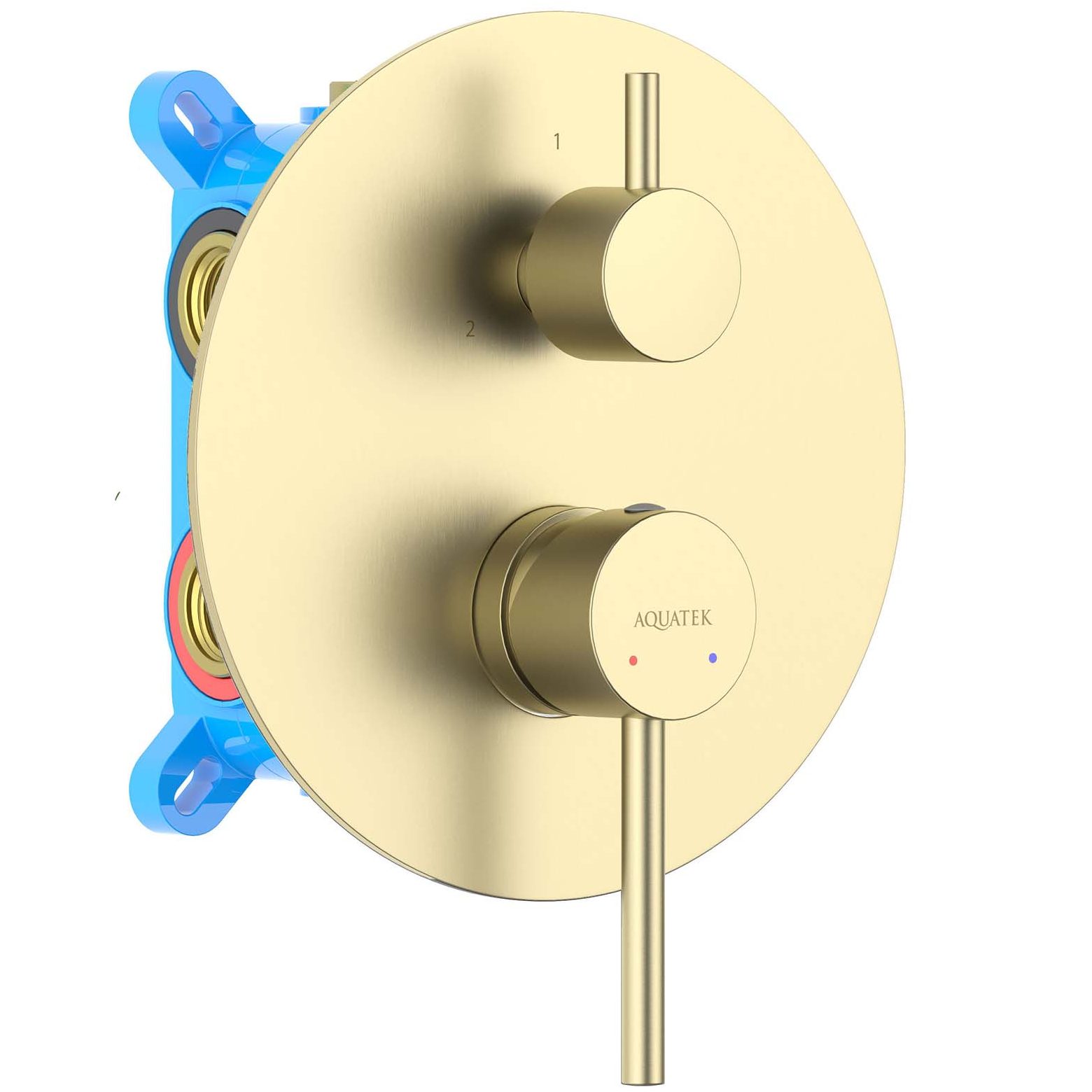 Однорычажная система регулировки силы струи и температуры воды. Цельный корпус смесителя снижает вероятность протечек. Декоративная пластина 3 мм из нержавеющей стали. Поворотный переключатель на душ. Лейка и шланг в комплект не входят. Комплект поставки: смеситель из латуни с установочной коробкой на 2 потребителя (внешняя и скрытая часть), декоративная накладка на стену из нержавеющей стали 3 мм, душевой гарнитур приобретается отдельно.