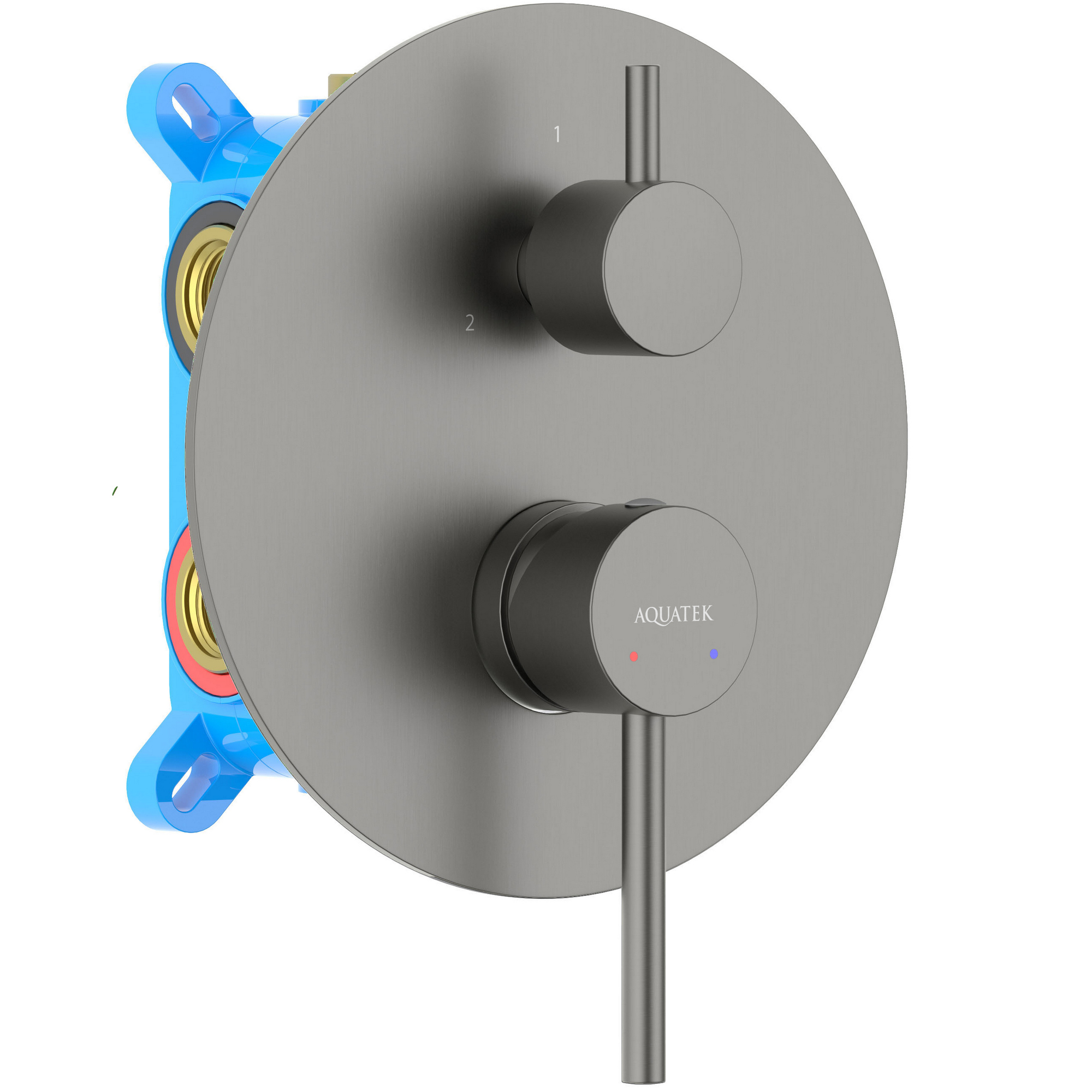 Однорычажная система регулировки силы струи и температуры воды. Цельный корпус смесителя снижает вероятность протечек. Декоративная пластина 3 мм из нержавеющей стали. Поворотный переключатель на душ. Лейка и шланг в комплект не входят. Комплект поставки: смеситель из латуни с установочной коробкой на 2 потребителя (внешняя и скрытая часть), декоративная накладка на стену из нержавеющей стали 3 мм, душевой гарнитур приобретается отдельно.