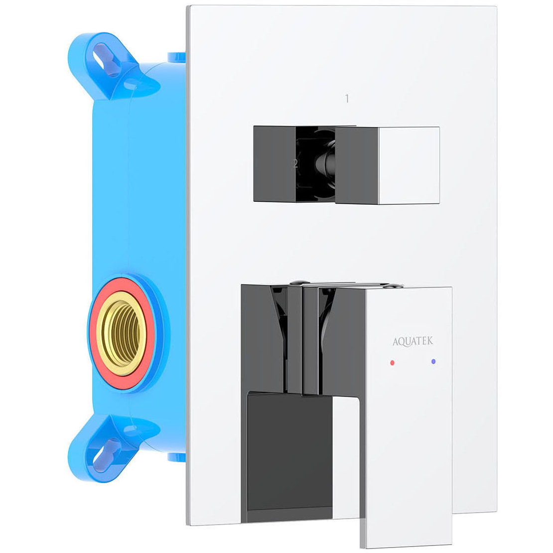 Однорычажная система регулировки силы струи и температуры воды. Цельный корпус смесителя снижает вероятность протечек. Декоративная пластина 3 мм из нержавеющей стали. Поворотный переключатель на душ. Лейка и шланг в комплект не входят. Комплект поставки: смеситель из латуни с установочной коробкой на 2 потребителя (внешняя и скрытая часть). Декоративная накладка на стену из нержавеющей стали 3 мм. Душевой гарнитур приобретается отдельно.