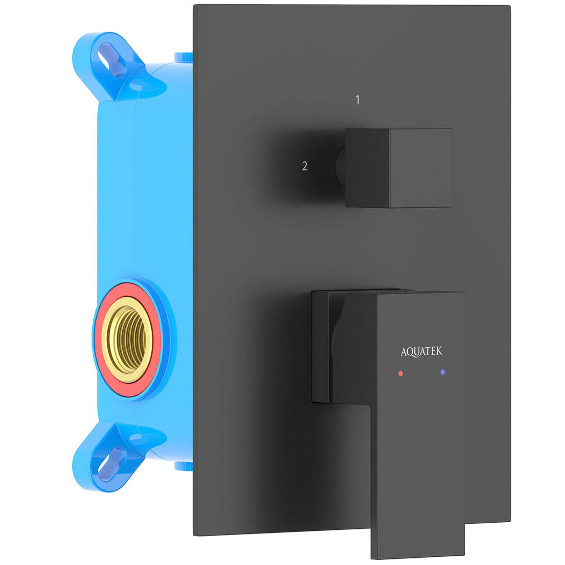 Однорычажная система регулировки силы струи и температуры воды. Цельный корпус смесителя снижает вероятность протечек. Декоративная пластина 3 мм из нержавеющей стали. Поворотный переключатель на душ. Лейка и шланг в комплект не входят. Комплект поставки: смеситель из латуни с установочной коробкой на 2 потребителя (внешняя и скрытая часть). Декоративная накладка на стену из нержавеющей стали 3 мм. Душевой гарнитур приобретается отдельно.