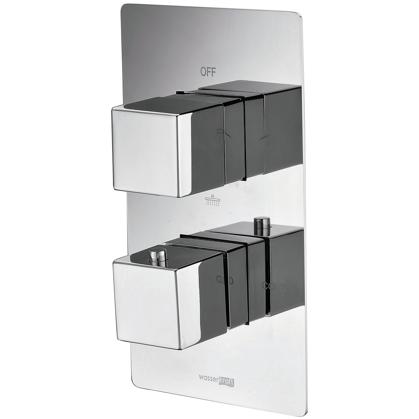 Термостатический картридж 34 мм, Vernet (Франция). Керамический поворотный переключатель на душ Hent. Обратный клапан Neoperl. Смеситель на 3 выхода. Подключается к трем аксессуарам для душа: верхней душевой насадке, лейке для душа и настенному изливу. Входит в комплект: комплект скрытого монтажа, наружная часть смесителя. Материал: латунь. Покрытие: хромоникелевое.